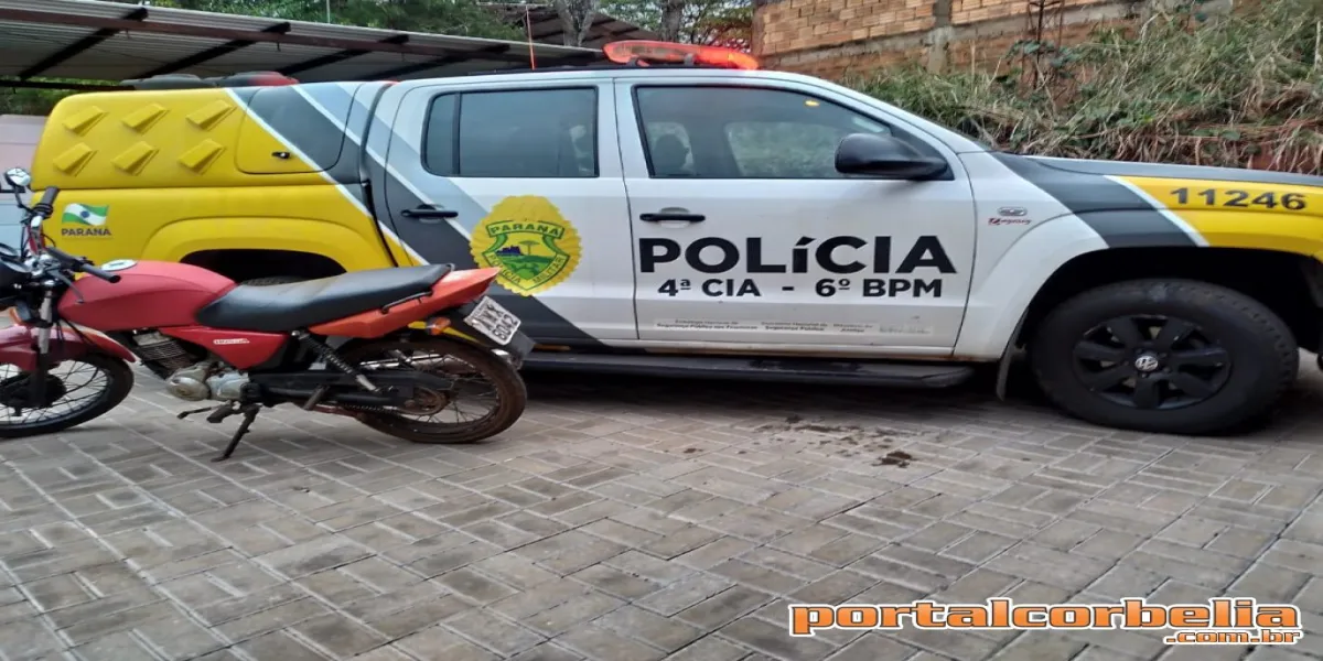 Uma equipe da Rotam de Corbélia em patrulhamento na tarde deste domingo na Avenida Castelo Branco no bairro Jardim Vera Lucia avistou uma motocicleta estacionada no pátio de uma residência.