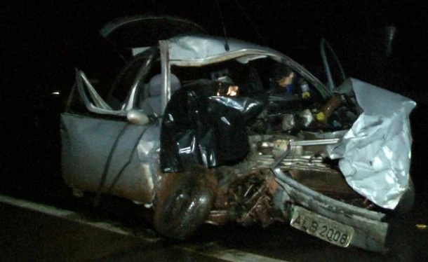 Um homem morreu no fim da madrugada desta sexta-feira (27), em um grave acidente entre carro e carreta, na BR 369, há 3 km do Trevo Cataratas, em Cascavel.