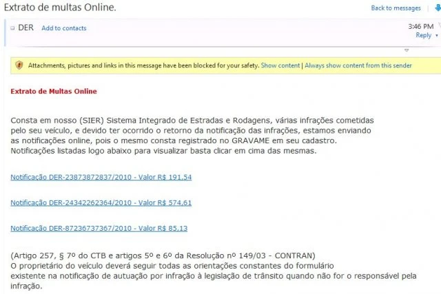Eventuais mensagens de e-mail que exibam a marca da Polícia Rodoviária Federal ou venham acompanhadas de nomes de pessoas que supostamente trabalhem na instituição e que informem a existência de multas são fraudulentas.