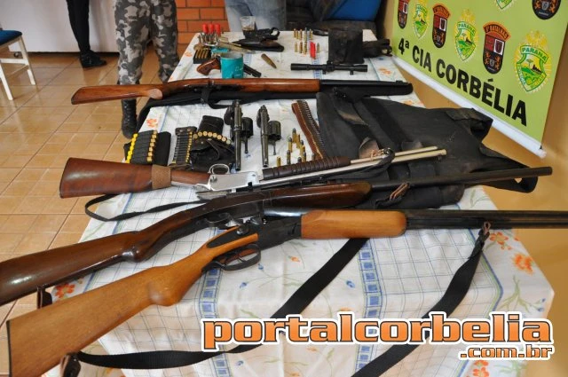 Foram detidas 5 pessoas, apreendidas pelomenos 10 armas, e aproximadamente 400 munições, os quais foram encaminhados para o 6ºBPM em Corbélia.