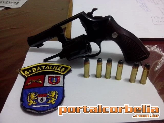 Durante uma abordagem realizada no início da madrugada de hoje (02) no centro da cidade de Corbélia, Policiais Militares localizaram em um veículo Toyota um revólver calibre 38 com 6 munições intactas.