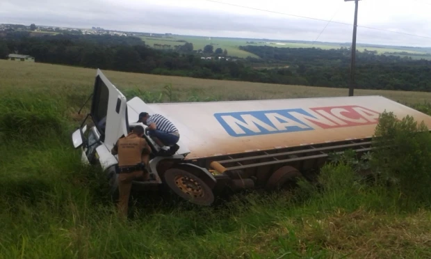 Segundo informações no local, o homem dormiu ao volante. Policiais Militares que passavam pela rodovia avistaram o caminhão tombado.