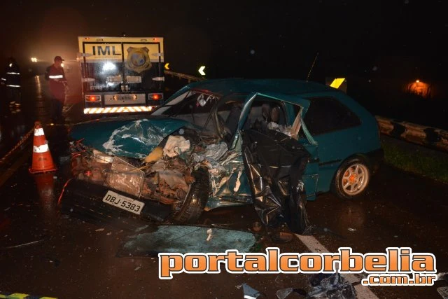 Um Gol com placas de Cafelândia e um Ágile de Campina da lagoa ficaram destruídos devido à força do impacto.