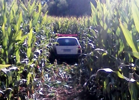O automóvel oficial estava abandonado em uma plantação de milho na região de Nova Aurora.O veículo foi encaminhado para a delegacia.
