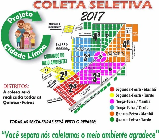 Por: O Departamento de Meio Ambiente do Município informa a todos o novo roteiro da Coleta Seletiva do Re