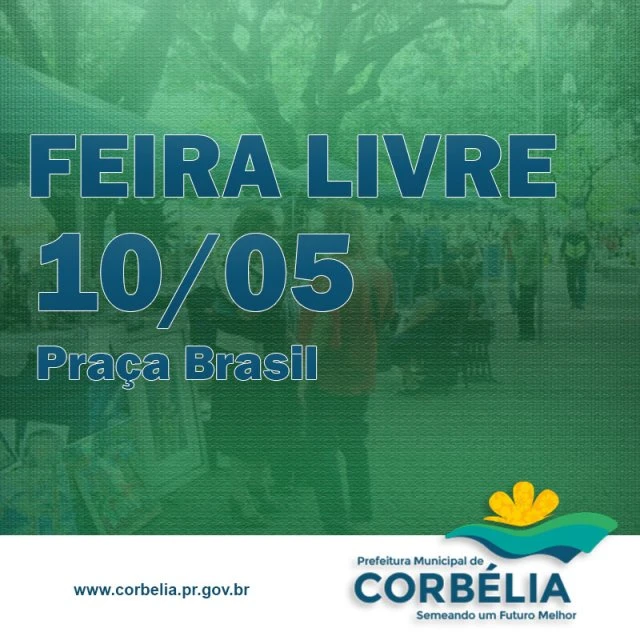 A Secretaria de Desenvolvimento Econômico Agricultura e Turismo do Município estará realizando na próxima quarta-feira dia 10/05 a partir das 15h00 a segunda edição da Feira Livre na Praça Brasil em Corbélia.