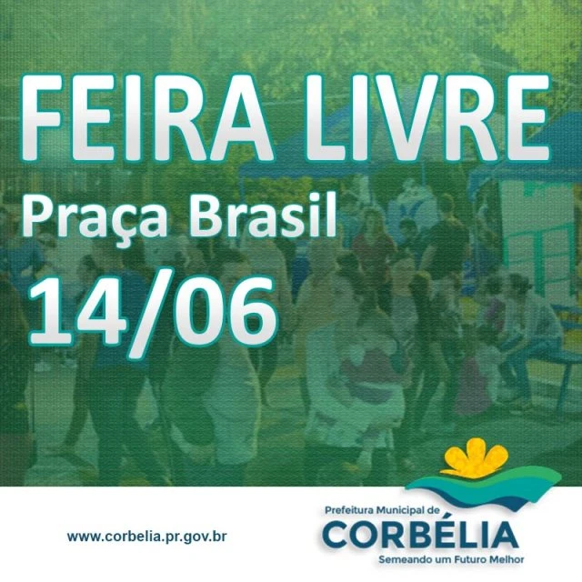 A Secretaria de Desenvolvimento Econômico Agricultura e Turismo informa que será realizada hoje (14) mais uma edição da Feira Livre de Corbélia na Praça Brasil a partir das 15h00.