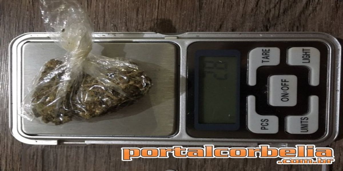 Durante uma abordagem de rotina na tarde de hoje, uma equipe da RPA de Corbélia localizou com uma jovem uma quantia de maconha que totalizou 2.8gramas, que segundo ela era para seu consumo.