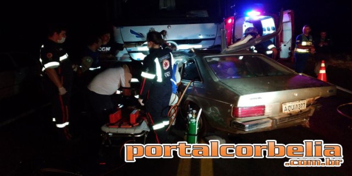 Uma colisão frontal envolvendo um Corcel com placas de Toledo e um caminhão foi registrada no início desta noite no KM509 da BR369 próximo ao trevo de acesso ao reassentamento São Francisco entre Cascavel e Corbélia.
