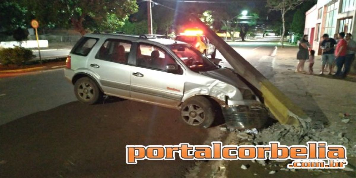 Uma Ecosport colidiu e derrubou um poste na Avenida São Paulo na noite de ontem por volta das 22h40.
