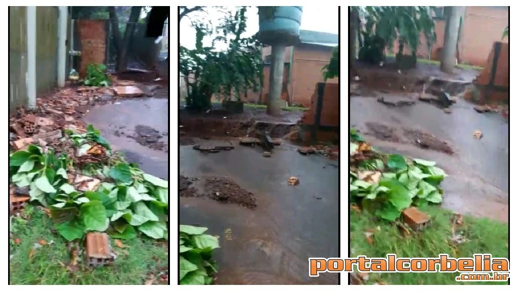 O muro de um clube situado na rua Orquídea não resistiu a força da água das chuvas desta terça feira e veio a cair.