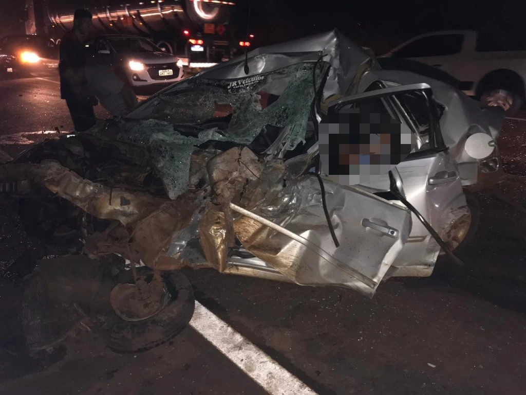 O motorista da sedan morreu no local identificado como Gilmar Cassiano de Souza, de Nova Aurora, esposa e o filho que também estavam no carro, foram os feridos graves e com risco de morte.