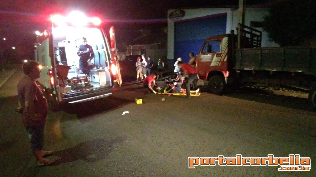 Um jovem conduzindo uma bicicleta motorizada colidiu contra um caminhão que estava estacionado na rua Tipuana no início da noite desta quarta feira por volta das 19h30 em Corbélia.