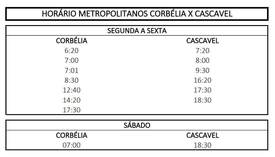 Novos horários de ônibus Corbélia X Cascavel