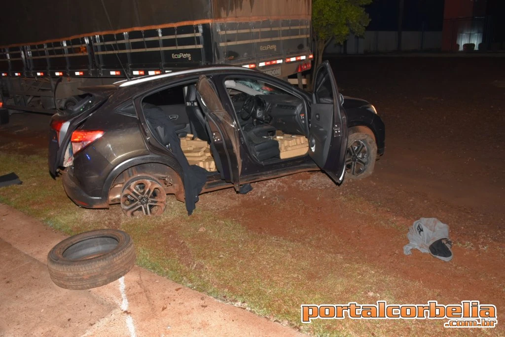 O veiculo, um HRV tinha registro de roubo no Rio de Janeiro. O condutor do veículo foi preso no local com ferimentos moderados devido a colisão.