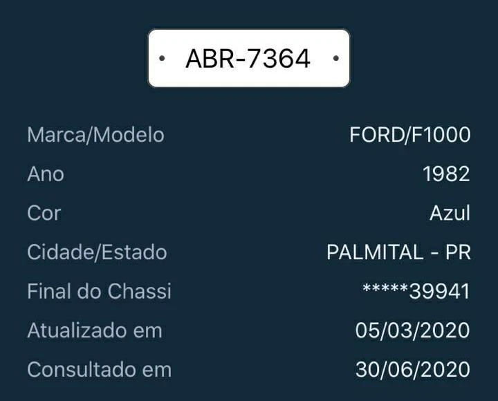 A F1000 de cor azul, ano1982 estava em frente à sua residência na rua Cravo em Corbélia quando foi levada.