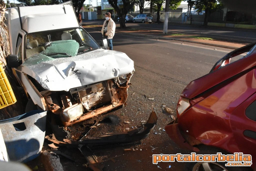 Um acidente foi registrado na tarde desta quinta feira na Avenida Rio Grande do Sul na vila São José em Corbélia envolvendo uma Fiorino que fazia entrega de mercadorias contra dois veículos que estavam estacionados.