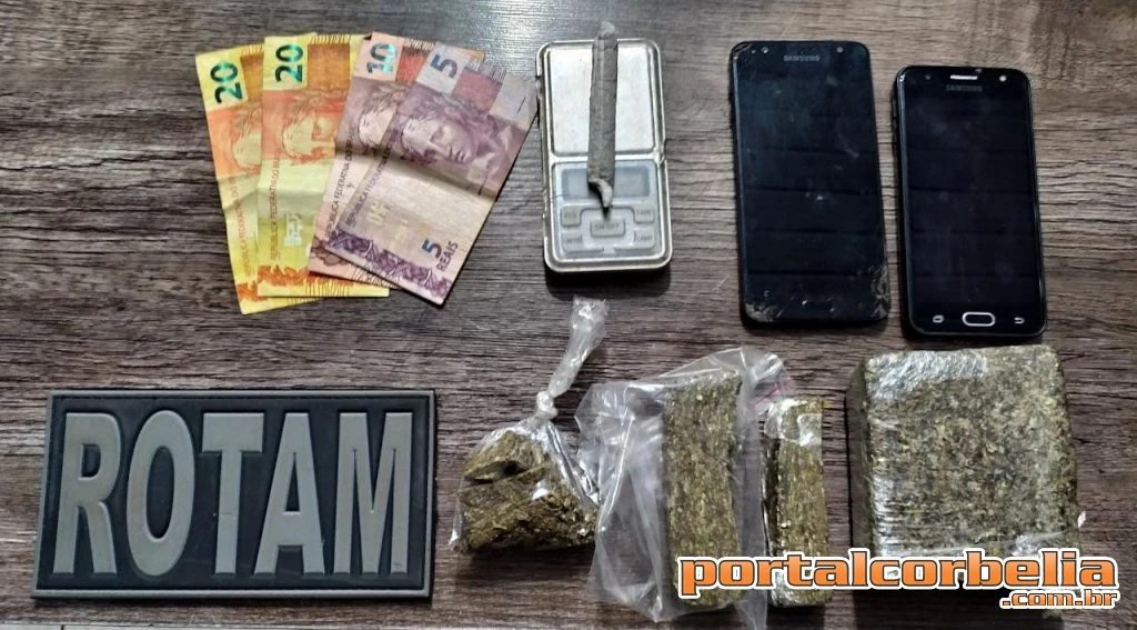 Uma equipe da ROTAM de Corbélia encontrou com o condutor de uma saveiro que sequia pela PR573 na noite desta quinta-feira uma pequena quantidade de maconha, e ao ser indagado assumiu ter mais umaporção da droga em sua residência. Já na residência do mesmo foi localizado mais 77,5 gramas da droga.