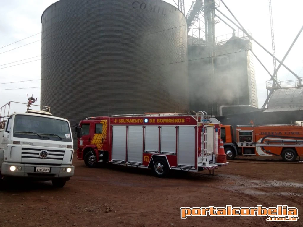 Incêndio em secador de grãos mobiliza equipes de bombeiros