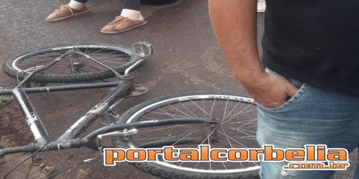 Uma colisão envolvendo um veículo Ford Ka e uma ciclista foi registrada na esquina das rua General Osório e Humberto de Alencar Castelo Branco no Berté em Corbélia.