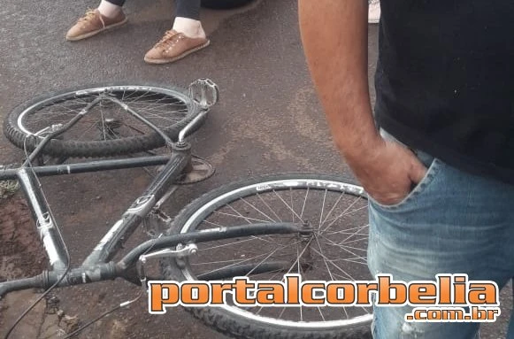 Uma colisão envolvendo um veículo Ford Ka e uma ciclista foi registrada na esquina das rua General Osório e Humberto de Alencar Castelo Branco no Berté em Corbélia.