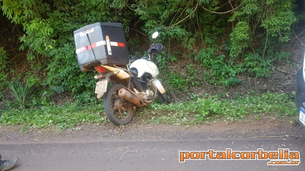 Um entregador sofreu uma queda de moto em uma curva no Km10 da Pr583 quando seguia no trecho entre Corbelia e Braganey.