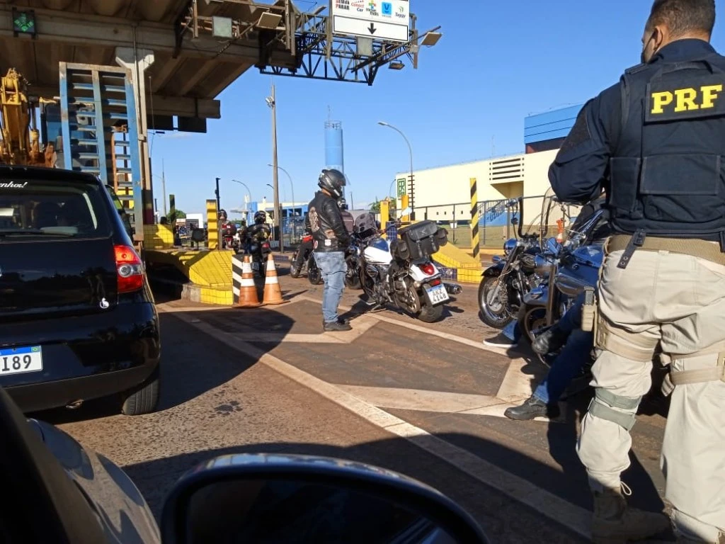 Motociclistas estão realizando manifestação nas praças de pedágio pedindo pela isenção das taxas para a categoria.
