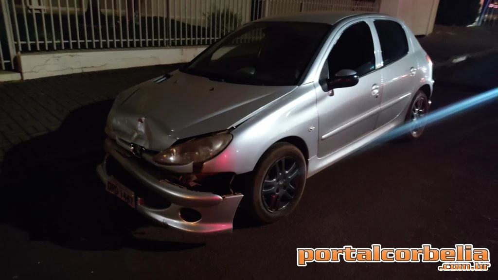 Um veículo Peugeot que seguia pela rua Margarida no sentido ao centro colidiu contra a traseira de um outro veículo que estava estacionado em frente a uma residência no início da noite desta sexta-feira em Corbélia.