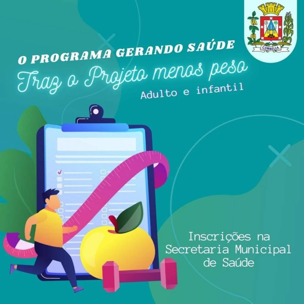 A Secretaria Municipal de Saúde, através do Programa Gerando Saúde dará início ao Projeto Menos PESO + SAÚDE, para adultos e crianças.