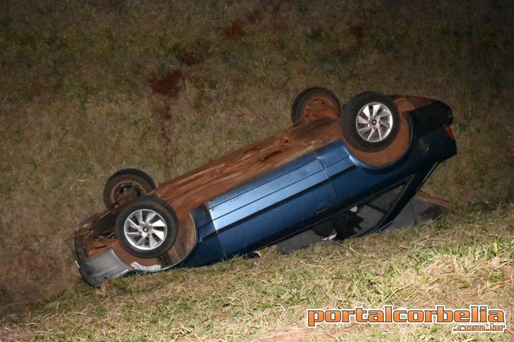 Um veículo Escort que descia pela rua Vitória Régia para acessar a via marginal da BR369 perdeu o controle e caiu em uma valeta entre a rodovia e a marginal nesta sexta-feira por volta das 22h00 em Corbélia. Após colidir lateralmente contra o meio fio o carro veio a capotar e cair.