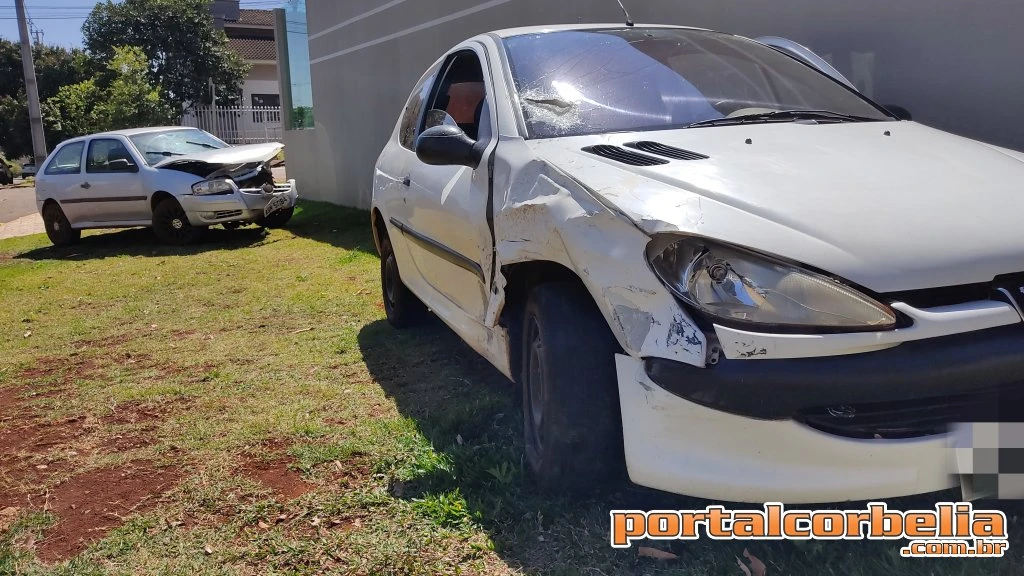 Uma colisão envolvendo um veículo Gol e um Peugeot 206 foi registrada por volta de 12h00 desta quarta feira na rua Tipuana na esquina com a rua Jasmin em Corbélia.