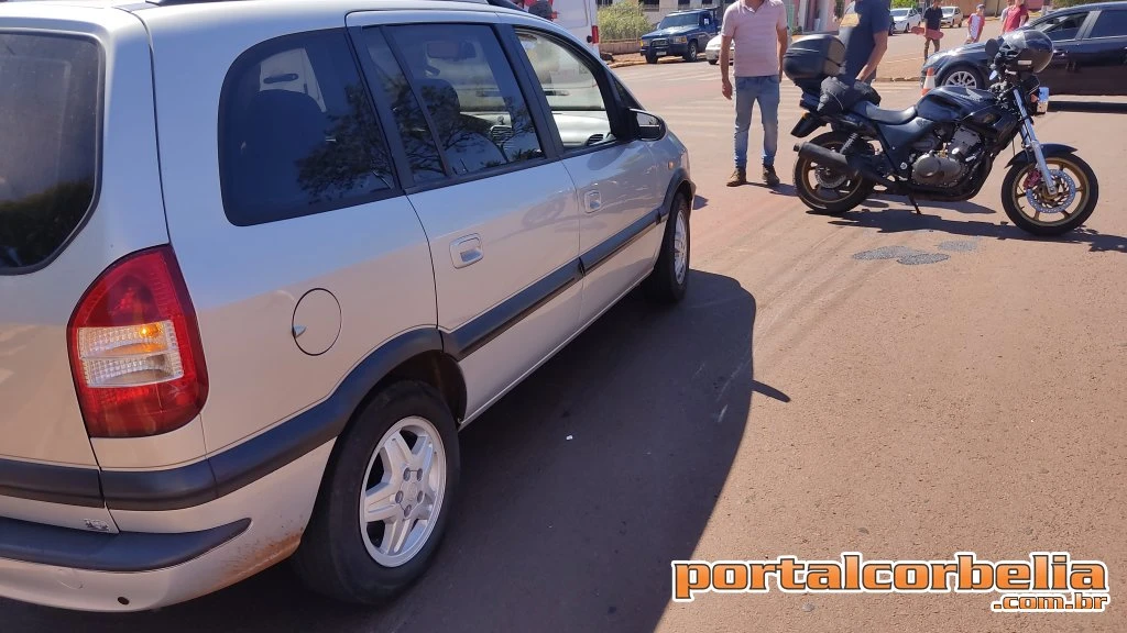 Um acidente envolvendo um veículo Zafira e uma motocicleta foi registrado por volta das 14h30 na Avenida São Paulo na esquina com a rua Minas Gerais em Corbélia.