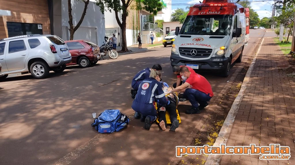 Jovem sofre queda de moto na Avenida Rio Grande do Sul em Corbélia