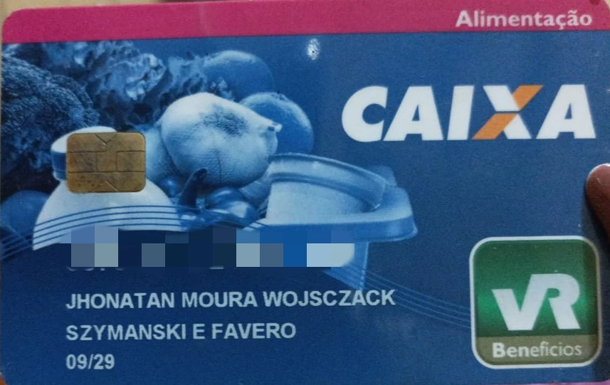 Um cartão vale alimentação em nome de Jhonatan Moura Wojczack Szymanski e Favero.