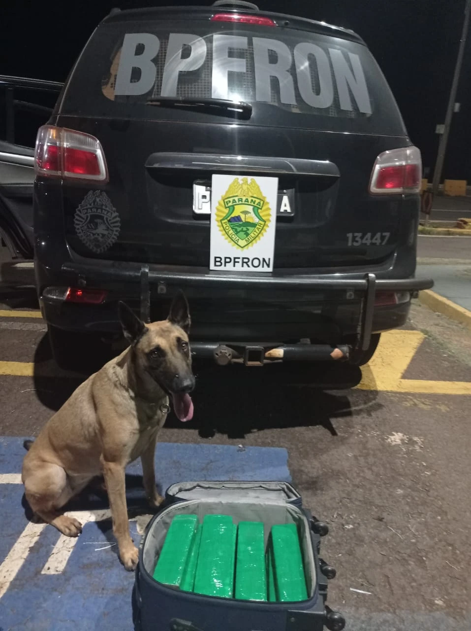 Na noite de domingo (27/02) policiais militares do Pelotão de Operações com Cães do BPFRON - Batalhão de Polícia de Fronteira patrulhavam a cidade de Corbélia-PR, durante Operação Hórus, quando abordaram um ônibus que teria destino a cidade de Goiânia-GO. Os cães farejadores do BPFRON indicaram a presença de ilícitos em uma bagagem. Nela foram encontrados tabletes de substância análoga a maconha totalizando 9,678 kg. Com a iminente abordagem policial, o passageiro dono da bagagem fugiu em direção a uma mata próxima e não foi encontrado. A droga apreendida foi encaminhada para a delegacia da Polícia Civil de Cascavel-PR.