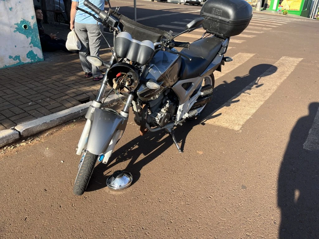 Um jovem de 21 anos de idade sofreu uma queda de moto por volta das 09h00 desta segunda-feira na avenida Minas Gerais quando acessava a rotatória no cruzamento com a rua Gardênia em Corbélia.