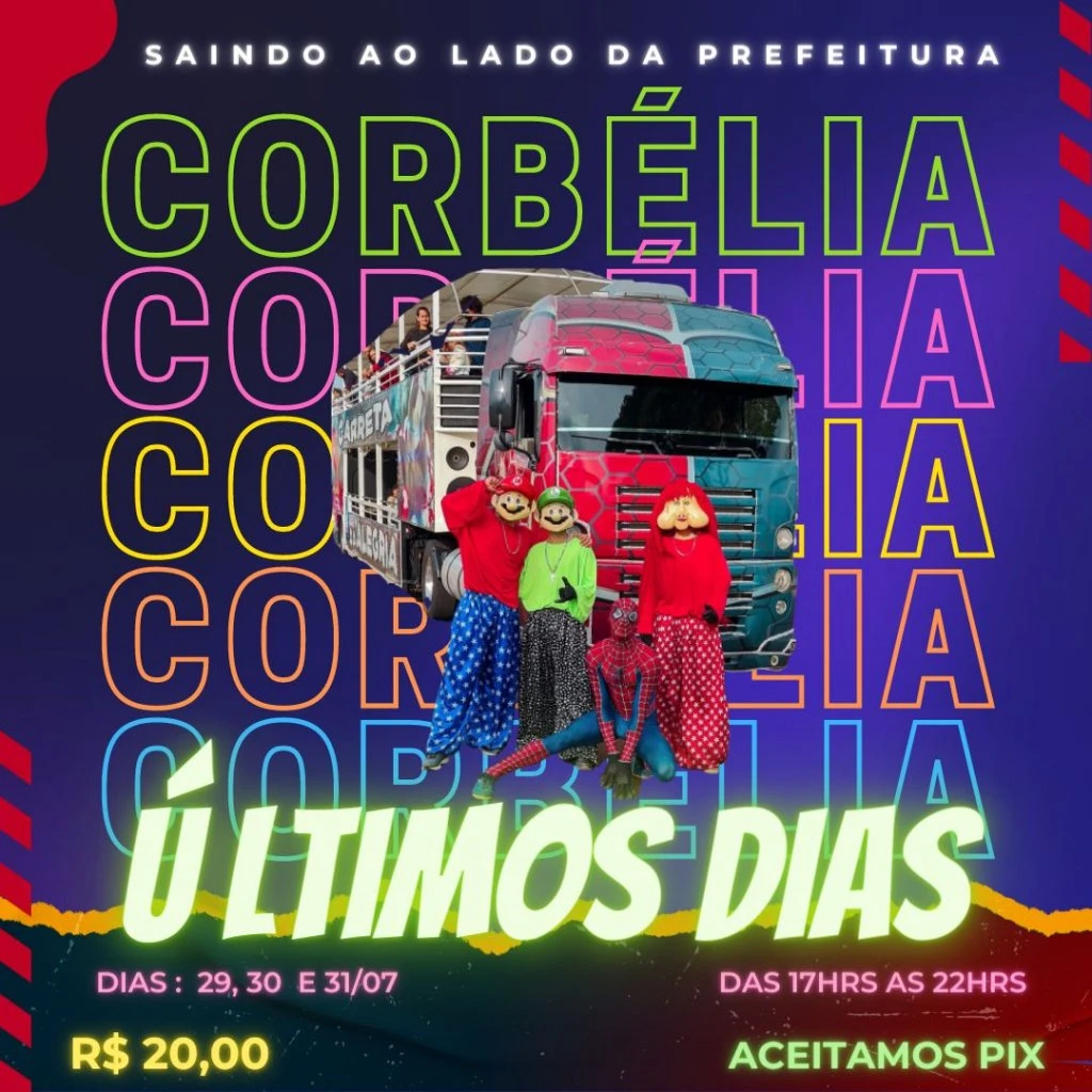 Últimos dias da Carreta da Alegria em Corbélia, serão mais três dias de pura diversão em um passeio de aproximadamente 30 minutos pelas ruas da cidade com músicas animadas, personagens que agitam a galera e luzes coloridas.