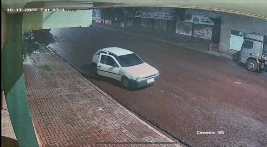 Câmeras de segurança de uma empresa registraram o momento em que dois indivíduos roubaram um veículo Gol durante a madrugada desta terça-feira na rua Hortênsia em Corbélia.
