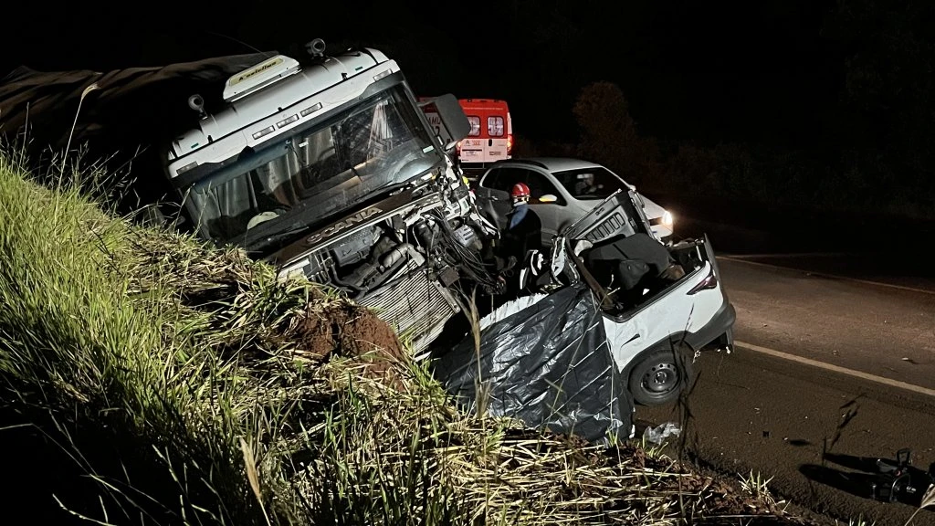 Uma colisão frontal envolvendo três veículos foi registrada na noite desta segunda-feira no KM506 da BR369 nas proximidades do Bosque São Cristóvão em Corbélia envolvendo uma carreta, uma Fiorino e uma Strada.