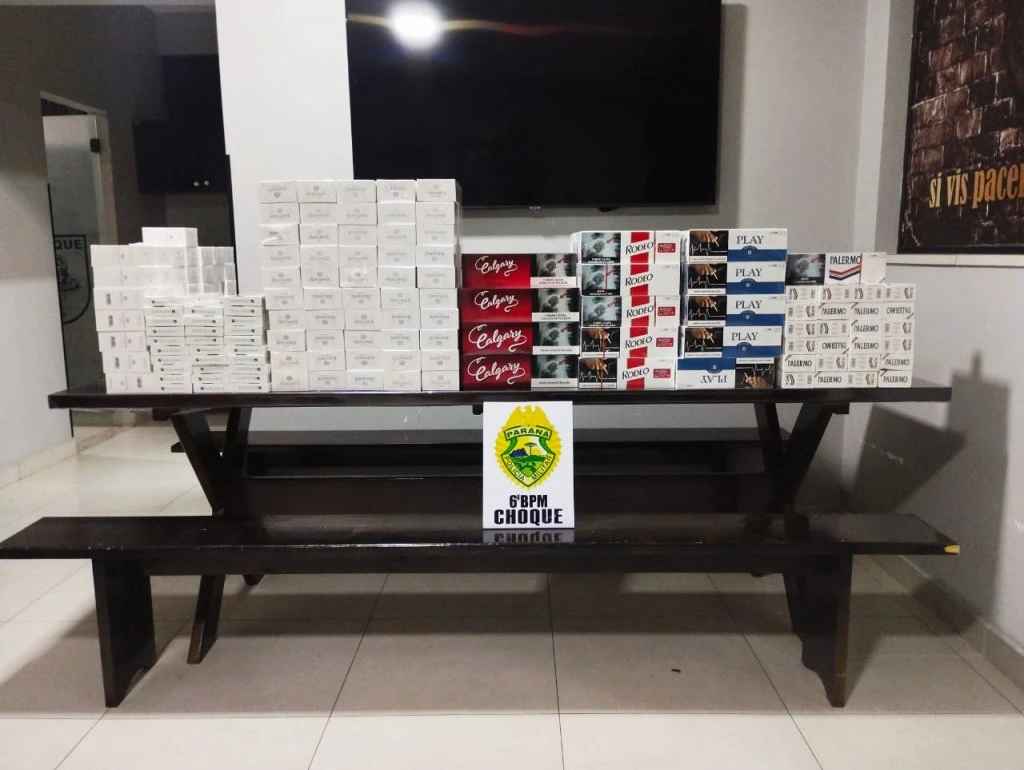 A equipe em abordagem no pedágio de Corbelia abordou um coletivo com itinerário de Foz do Iguaçu Londrina onde dois passageiros foram flagrados transportando cigarros oriundos do Paraguay que totalizaram 387 maços no valor aproximado de 50.000,00 (cinquenta mil reais) Os indivíduos foram identificados e liberados no local enquanto os produtos foram entregues na Receita Federal de Cascavel.