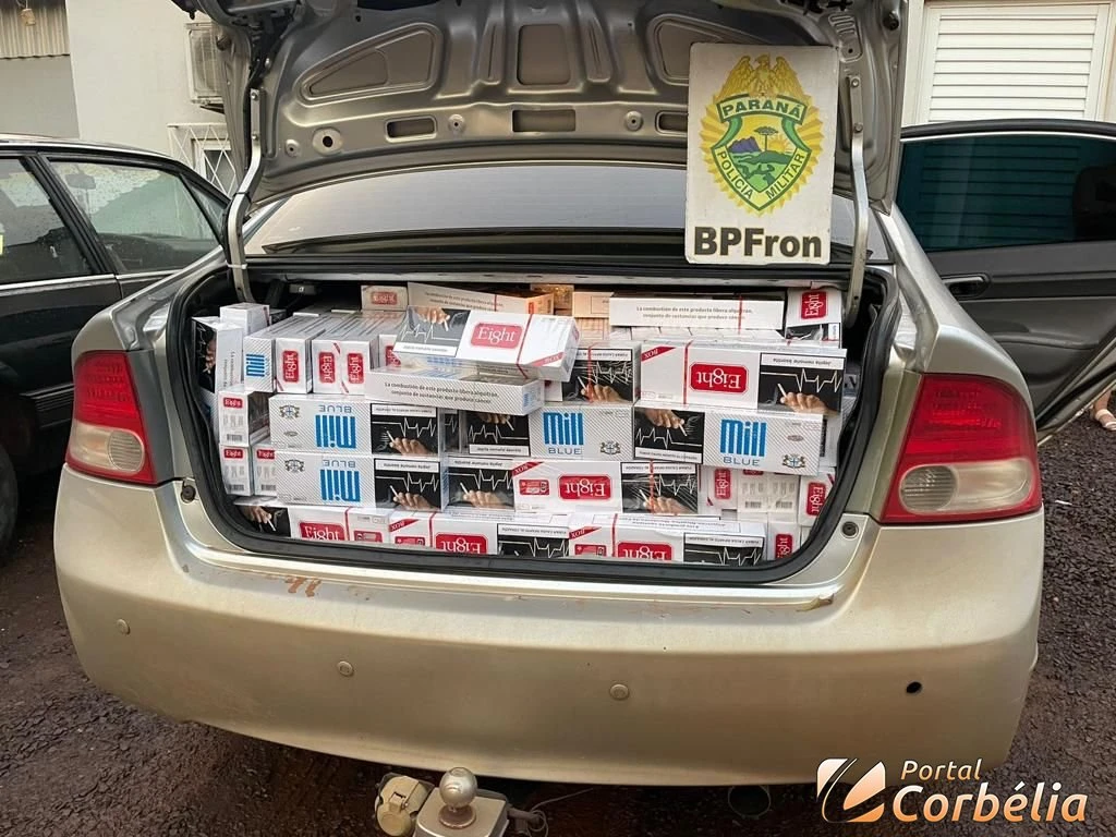 BPFRON apreende carro carregado com cigarros contrabandeados em Corbélia