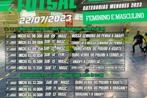 O Distrito de Ouro Verde do Piquiri recebe neste sábado, 22, a grande final do II Campeonato Regional de Futsal de Menores que reúne times dos municípios de Corbélia, Braganey, Anahy e Iguatu, em categorias femininas e masculinas, com idades entre 9 e 17 anos.