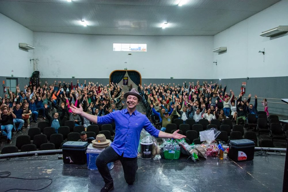 Juca Bala subiu ao palco e divertiu o público, conhecido por seu humor inteligente e suas piadas bem-humoradas, ele arrancou gargalhadas do público