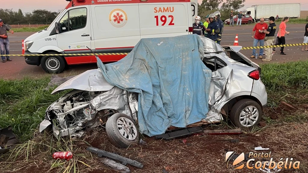 Segundo informações, uma carreta com placas de Matelandia estava seguindo no sentido à Ubiratã, quando, no trevo de acesso ao distrito, colidiu com um Fiat Argo que cruzava a rodovia. O condutor da carreta relatou que tentou desviar, mas o veículo em movimento foi atingido em cheio pelo caminhão.