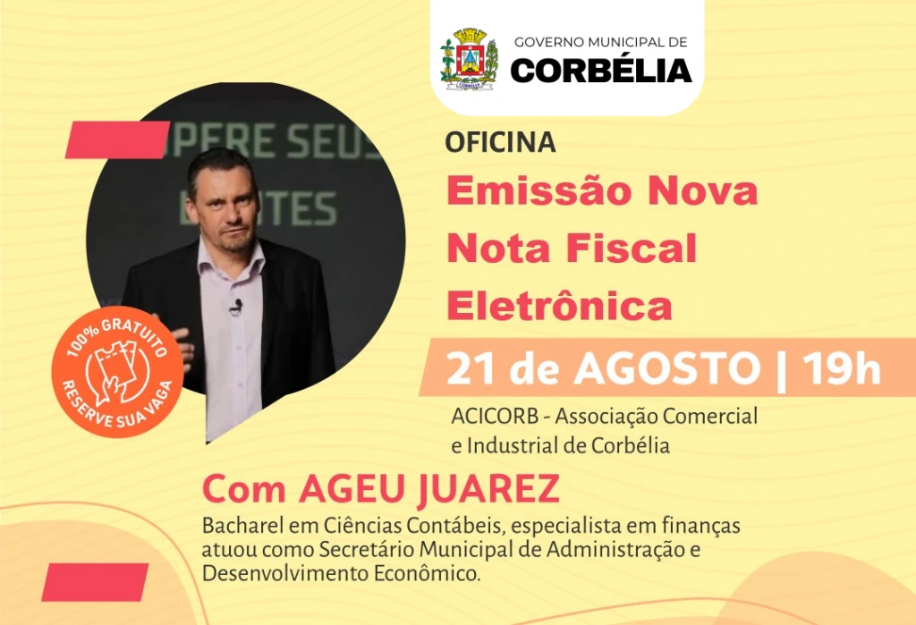 A Sala do Empreendedor de Corbélia, junto com o SEBRAE oferecerão gratuitamente no dia 21 de agosto uma oficina sobre o novo formato de emissão de notas fiscais através do sistema GOV.BR. O novo sistema do Governo Federal passa a ser de uso obrigatório aos microempreendedores individuais prestadores de serviços a partir de setembro.