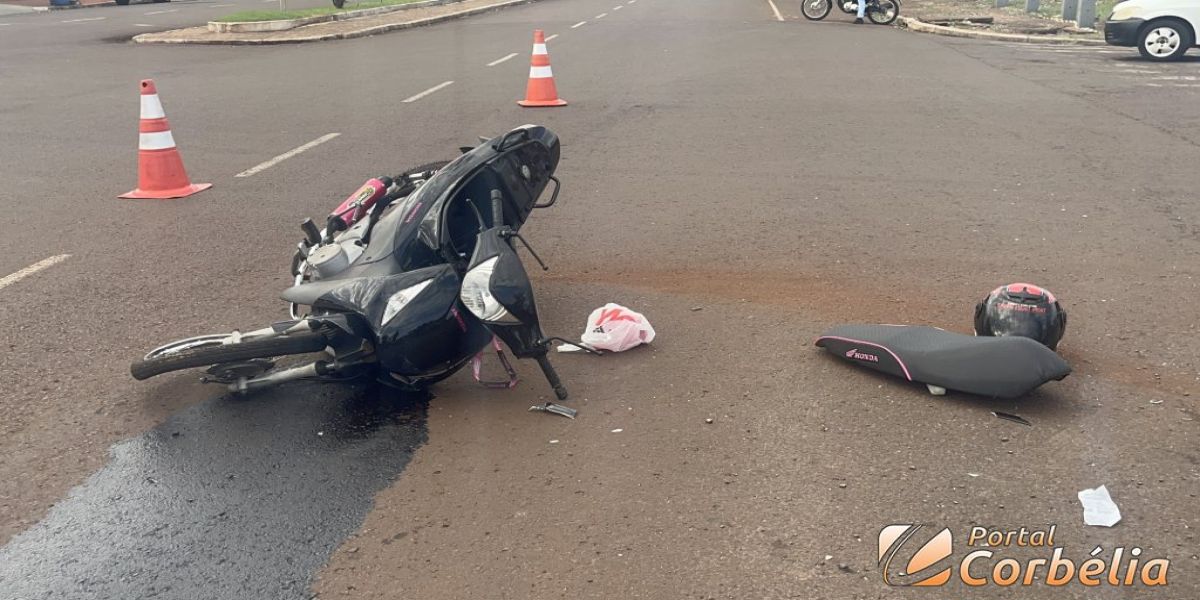 Uma colisão lateral envolvendo um veículo ford KA e uma motocicleta Honda Biz foi registrado na manhã desta quinta-feira na Avenida Paraná na esquina com a Avenida Minas Gerais em Corbélia.