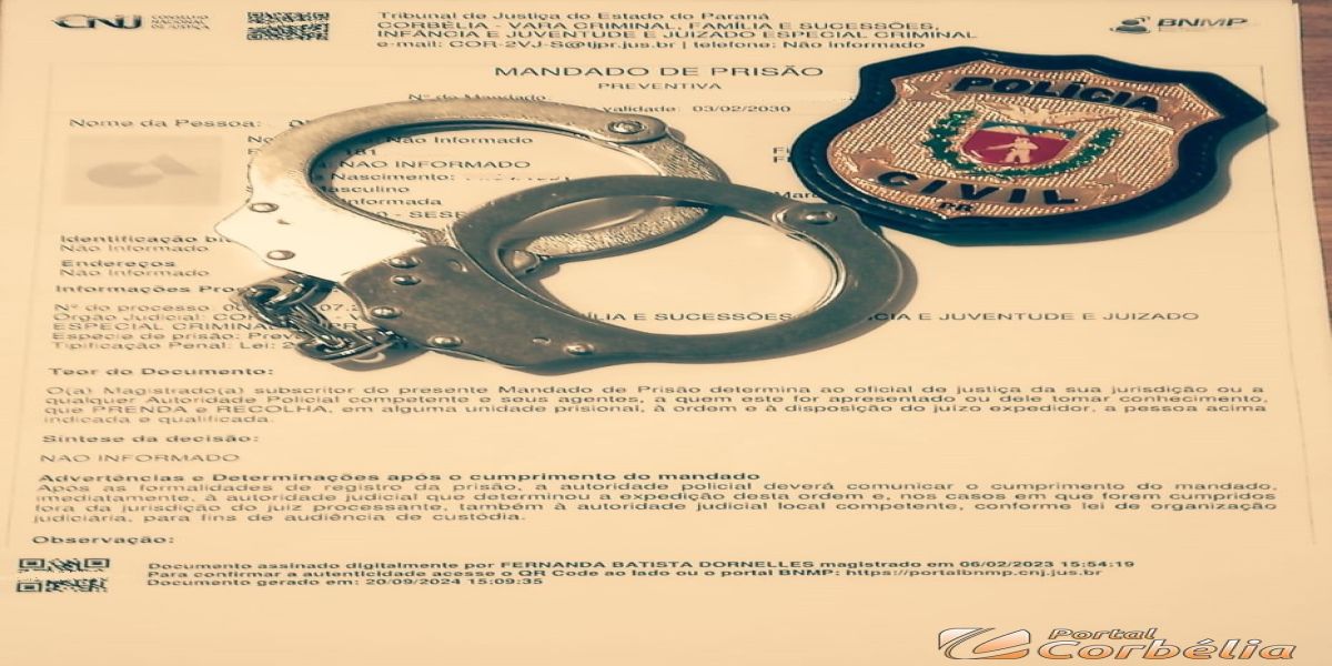Nesta quarta-feira, 9 de outubro de 2024, a equipe da Polícia Civil de Corbélia cumpriu dois mandados de prisão expedidos pelo Poder Judiciário da cidade. O primeiro detido foi um homem de 29 anos, procurado pelo crime de estupro de vulnerável, localizado na cidade de Cascavel. A segunda prisão foi motivada por inadimplência de pensão alimentícia, sendo o acusado detido em Corbélia.