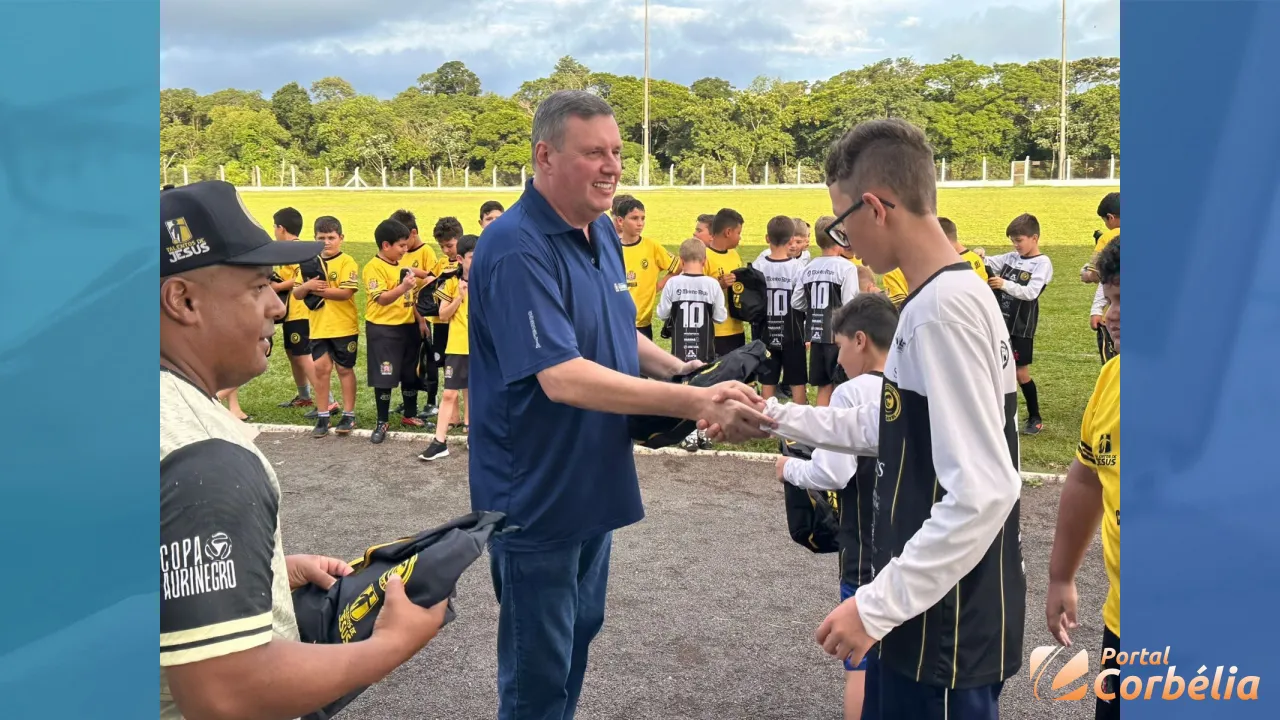 O evento contou com a presença do secretário de Esportes e Lazer, Erlon Gazineu, do vice-prefeito Sandro Huf e do professor Luciano Marcelino, que acompanharam a entrega dos presentes. Cada aluno recebeu uma mochila e uma caneleira, reforçando o apoio ao desenvolvimento esportivo e pessoal dos jovens participantes do projeto.
