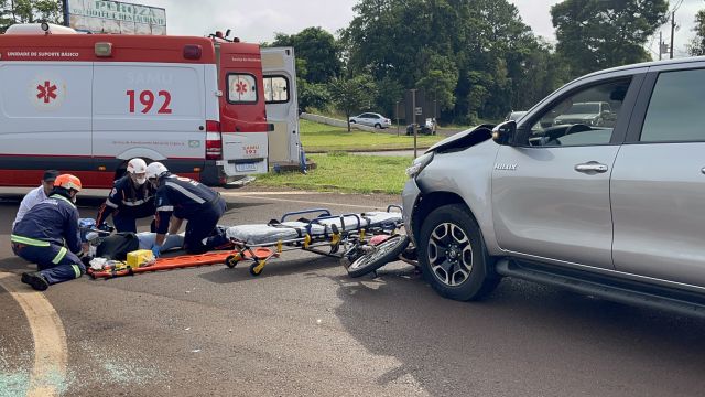 O atendimento às vítimas foi realizado pelo Samu, que prestou os primeiros socorros ainda no local. Em seguida, o as duas vítimas ao Pronto Atendimento Municipal de Corbélia. A passageira da motocicleta sofreu uma possível fratura fechada na perna, enquanto o condutor também recebeu avaliação médica. Na caminhonete, ninguém ficou ferido.