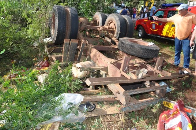 Segundo relatos de populares, um caminhão Mercedes Bens placas AMO1517 de Toledo/PR, havia descido em alta velocidade e perdido controle ao chegar na curva, o qual capotou e seguiu arrastando arvores por onde passou, restos da carga foram encontrados a vários metros do local, varias equipes do corpo de Bombeiros estiveram no local para dar apoio.